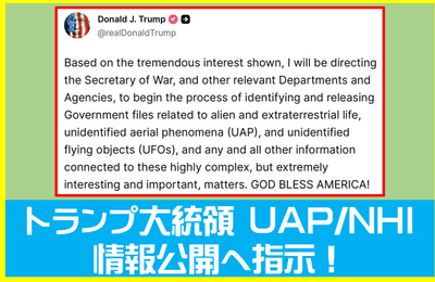 ┏━ 本日の号外 ━┓ トランプ大統領のUAP情報開示指示 新情報の公開可能性は低いか。 ┗━ ━┛ トランプ大統領は 就任以来 UAP/NHI情報の公開を噂されていたが、遂に 行動に出るようだ。 自身のトランプ版SNS(=TRUTH)に、 link truthsocial, WhiteHouse@x 非常に大きな関心が寄せられていることを受けて、私は 国防長官 および その他の関係省庁・機関に対…