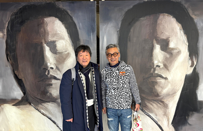 CSSホールディングスさんの子会社の東洋メディアリンクスさんの社長をつとめているのは高校同期のみっちゃん(未だに他に呼びようがない)。今回の展示会に声をかけてくれたので訪問。玄関に迎えに出てきてくれたのでした。「は、派手だな」って言ったら「アート仕様だ」とのことでした。 大きな作品を目の前にして迫力に押されますが「そこで自分が何を感じるか」ということに集中して見せていただきました。そこで感じる「違…