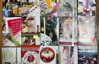 12月だというのにね。ねこ吉は封筒作りに精を出してます。 やりたいことを優先することにしたから・・・。 今は、marie claileの雑誌を封筒のテンプレートで切り抜き、マスキングテープやため込んだ切り抜きを貼り付けて、各15枚ずつ3種類のサイズを作成。 並べてほくそ笑む。 テーブルの下は散らかり放題。いつでもカオス状態。 切り抜きも、文字、景色、花、人物など種類別にファイルに入れている。 ねこ…