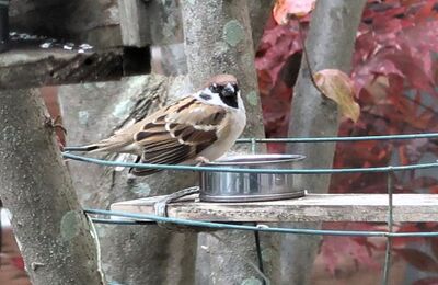 鳥のことも知識がないので詳しいことは知らないんですよね~ スズメさんって群れるのが当たり前だと思っていたのですが、どうもそうばかりではないようで・・・ 我が家のヤマボウシの樹にやって来るスズメさんを見ているといくつかのパターンがあるんですよ。 1.一羽のみではぐれ鳥のように 2.二羽でつがいっぽく 3.四、五羽の小集団の群れで 4.十羽程度の大集団で 中にメジロが入っていることも 毎日朝の9時台に…