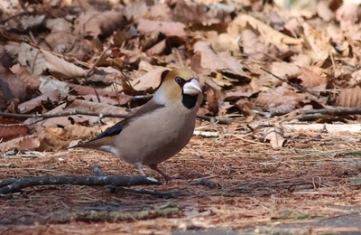 シメが道路に降りて餌を探していた。 木の実のようなものを食べている。 冬の間、いつも同じ場所で見られる。 にほんブログ村
