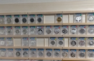 ユーラシア周辺8か国銀貨文明絵巻 ユーラシア周辺8か国文明絵巻が遂に完成しました。 背面には13㎜厚の桐材を使っています。 桐の棒材は無かったので、仕切り材は檜角材を使い、その上に角材より若干広い檜板材を貼って、脱落防止を掛けています。 この上にPVCかアクリルで覆う予定ですが、その部分は適当な透明板材が地元のホムセンになかったので、ネットで買うかなど、検討中です。 いずれにしても、左からタジキス…