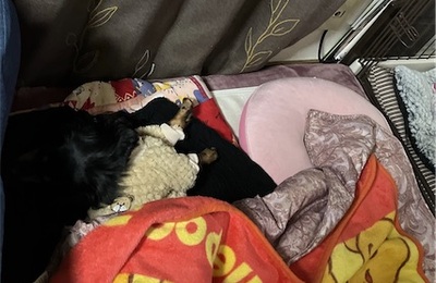 こんばんは🌙.*·̩͙お久しぶりの投稿です^^;毎日忙しくしてたらこちらのブログほったらかしてました(•ᴗ•; )朝晩寒くて辛い時期に入ってきました🥶 特に朝は布団から出るのが( •́__ก̀ )ツライ毎朝6時30分にパパさんから散歩行くで〰️と首輪を付けられるクロだけどここ最近は寒いのか首輪付けられ前に私のお布団に潜ってきて散歩拒否してはりますてへぺろ 私は遅めでいいやんって言うてたけど…