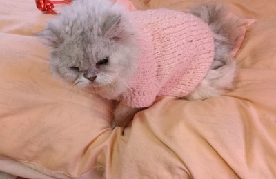変な形に組まれたKさんの足の上でくつろいでいたべーちゃん。 目つき悪いな…😅(20251225)