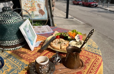 土耳其鷹嘴豆格仔餅$78+$30土耳其咖啡(跟主菜) 旧正月中夫が友人宅を訪れたりでよく居なかったので、オイスターが好きな馬湾の🇹🇷カフェの外席で一緒にまったりしてきました🐦⬛ こちらのコーヒー、お店の方が店内の熱い砂の上で淹れているのですよねー。 そのコーヒーのクラス等もあるみたいです。 ちょっとしたバクラバのデザートも割引で+$30で付けられたのでそちらもいただいちゃいました..この日は25…
