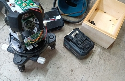 今回も遠方からの修理依頼。 マキタのレーザーの精度が悪く、ユニット交換の高額見積もりだったため メールで相談がありました。 幾分にも見ないと分かりませんので送って頂きました。 早速分解。 分解したまま配線を繋いで精度確認。 下げ振りにラインを合わせて上を見ると 高さ2mの糸よりもラインが3mmほどズレています。 このネジを回すと重心が変わるので再度確認。 ピッタリです。 精度の悪いものの半数くらい…