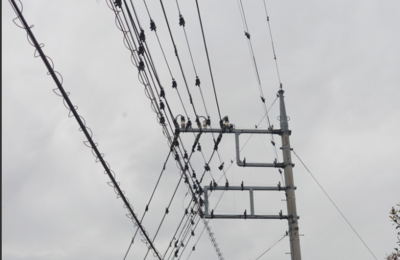 どうもこのタイプの電線見ると、ムクドリが大量に止まってるように見えるんだよね ↓ 遠目にはこんな感じ ↓ よくみると、電線を抑えてる部品。 ↓ 遠目に見て、うわっ鳥がいっぱい止まってる、上から爆弾落ちてくるかも~とか思ってヒヤッとする。近づくと鳴き声しなくて騙されたって感じで……。 本物が混じってるように見えたりもして、すごく紛らわしい。 ちなみに本物は、ネットから拾った画像だけど、こんな感じデス…