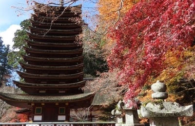 11月28日、談山神社を拝観したときの続きです。 十三重塔 神廟拝殿 こちらの通路を歩いて戻りました。 夫婦杉 約1時間ほど見学してバスが留置きされていた駐車場まで戻りました。 行は階段を下って神社まで歩きましたが、帰りは道路を上がってみました。