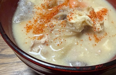 寒波がやってきて ホルモン剤副作用で あまり寒く感じなかったけど (逆に動くとすぐ暑くなる) さすがに寒い 空気が冷たい… こんな寒い夜は KSJだよねーってことで 京都亀岡丹山の酒粕で 粕汁を作りました。。 豚汁に酒粕をプラスして 一味を振っていただきまーす。 身体の中からぽかぽかに。 ⭐︎備忘録⭐︎ 入れたもの 豚肉、里芋、大根、人参、牛蒡、もやし 里芋、こんにゃく、あげ、しめじ 玉ねぎ、味噌…