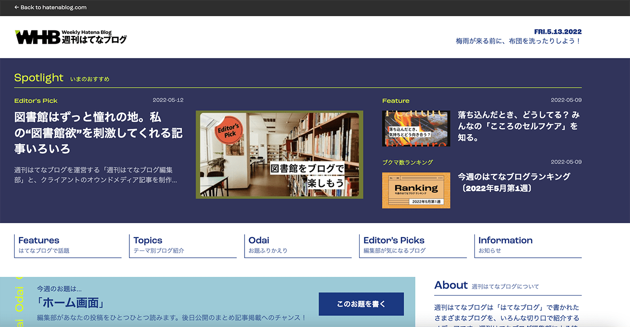 - 週刊はてなブログを読んでみましょう。はてなブログでの旬な話題紹介や、機能の活用法など、ブログが楽しくなる記事が揃っています。