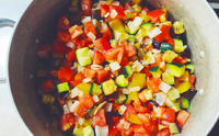 暑い夏に食べたくなるのが「天ざるそば」です。工房の畑で取れた野菜を使って野菜だけの天ぷらと、冷たくて美味しいざる蕎麦を調理します。 こんちゃんは、ざる蕎麦に合わせる天ぷらは野菜のみの天ぷらが好きです。真っ赤に熟れた種無しスイカのデザートで美味しく頂き…