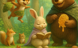 リスのリッキー、ウサギのウーちゃん、クマのクーちゃんは、ボランティア留学の報告をします。 リッキーは、カナダの森でどんぐりを植えるボランティアに参加した話を披露しました。枝から枝へ飛び回り、どんぐりをぽんぽんと土に埋めてみせると、観客は「まるで森がリッキーのポケット農園になったみたい!」と笑い、「世界中に木が増えるんだね」とうなずいていました。 ウーちゃんは、イギリスの図書館で子どもたちに物語を読み聞かせた体験を語りました。耳でページをめくりながら、ふわりとショールをかけて朗読します。子どもたち…
