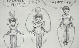 ■ バランスとして受けとめる 今回は「着地のこと」。 かかと着地について、何度かふれてきました。 今では「かか」くらいまで入力すると予測変換で候補に出てくるくらい。とはいえ、ジャンプにおける基本というわけでもなく、むしろ、うまく跳べないときの一例で何度も取りあげてきたフォームでした。 別名「ドッスン着地」とでも言えるでしょうか。おしりが沈んでしまって、明らかに余裕がない着地です。 その1回のために必死で跳んだ結果ならともかく、たいていは跳びつづけるために次の縄が回ってくるので、跳ぶ体勢に戻らない…