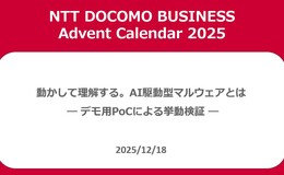 この記事は、NTT docomo Business Advent Calendar 2025 18日目の記事です。 みなさんこんにちは、イノベーションセンターの田口です。 普段はOffensive Securityプロジェクトのメンバーとして攻撃技術の調査・検証に取り組んでいます。 私たちのチームでは定期的に技術LTと称して、各メンバーが自由に技術的知見を共有する時間を設けています。 この記事では、私が技術LTの場で発表したAI駆動型マルウェア1の動作デモと、発表後のチーム内議論の様子について紹…
