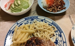 ▪️ハンバーグ ▪️アボカドサラダ ▪️おろしキノコ炒め 昨日の晩ごはんです。 いつものように献立に行き詰まり、また。に、 「明日何か食べたいものある?」と聞いてみたところ、 「う〜ん、今日(つまり一昨日)が炭水化物だったから普通に、ハンバーグとかでいいよ」 ・・・私が普段「困った時はハンバーグ」と言い過ぎて、リクエストに困った人まで言うようになっちゃったよ(笑) と言う訳で、ひき肉を買ってきてハンバーグを作りました。 肉が豊富で安いスーパーに買い物に行ったら、冷え込んできたからか人々の服装が一…