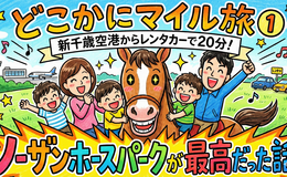 最高でした〜 この記事でわかること 新千歳空港からレンタカー(タイムズ)で移動するときの注意点と所要時間 5人家族×コンパクトカー(スイフト)の荷物事情 ノーザンホースパークの入場料と、おすすめの駐車位置 子どもがドハマりした「おもしろ自転車」と、家族全員感動の「観光馬車」 競馬好きパパによる、引退馬への「ささやかな恩返し」 どこかにマイルの概要は、 「どこかにマイルの概要&我が家の使い方まとめ」 にくわしく書いています。 どこかにマイル旅スタート!まずはレンタカーを確保せよ 新千歳空港に降り立…